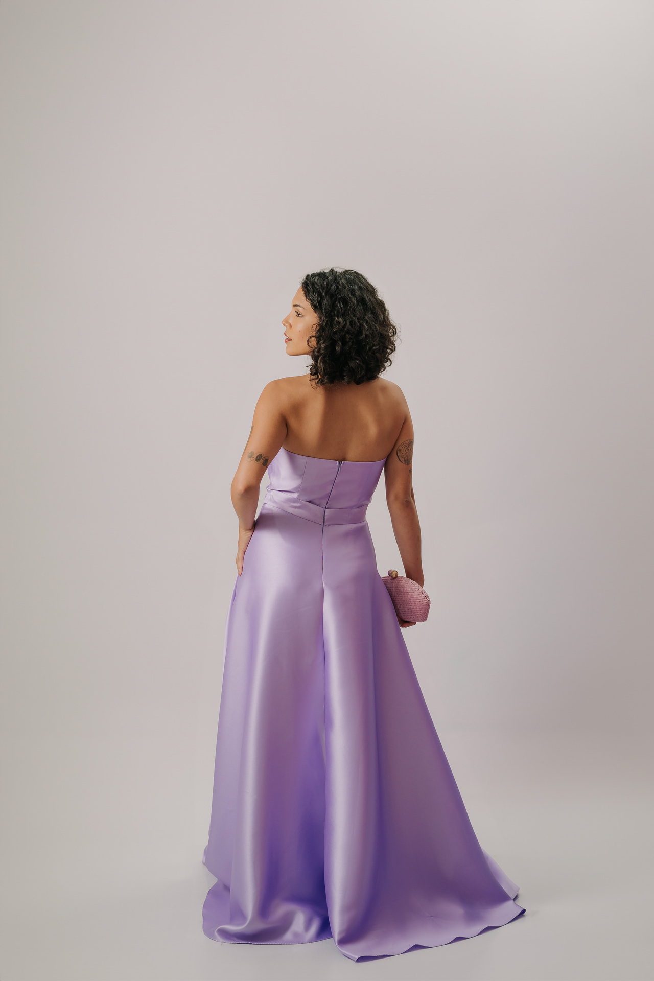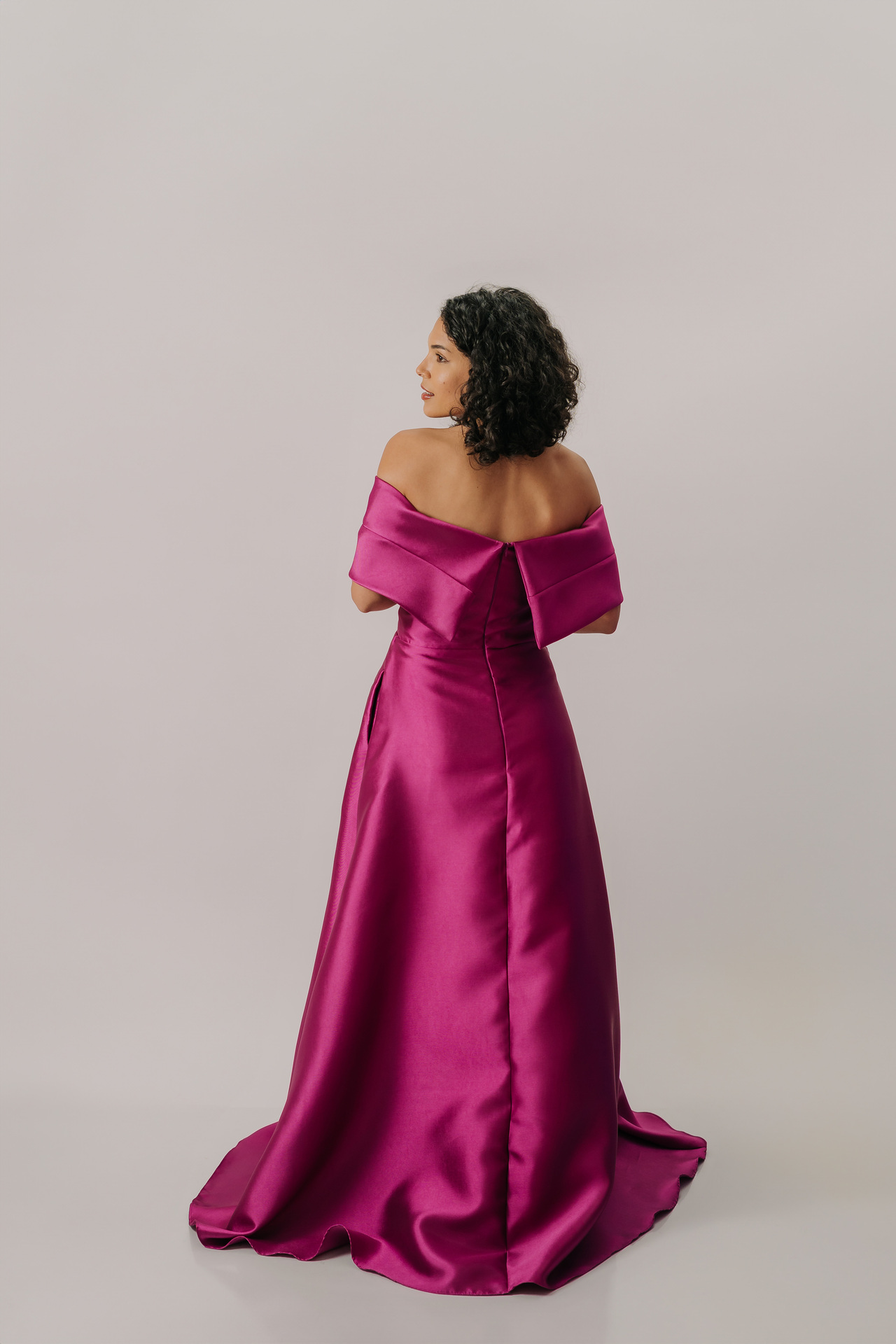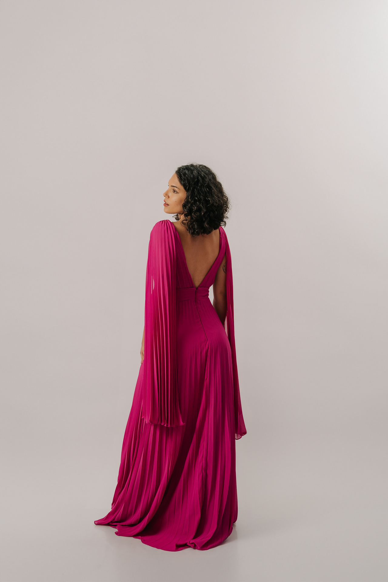 Vestido tomara que caia com laço frontal e saia de fenda (fúcsia)