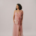 Vestido em tule com detalhe floral e faixa “multiuso” frente e costas