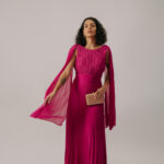 | Modelagem | Ajustada ao corpo na parte superior, Cintura Marcada, Saia ampla, Saia ampla efeito "A", Saia longa com fenda frontal lateral |