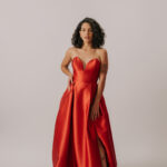 Perfeito para formaturas e eventos de gala, sua modelagem valoriza a silhueta, sendo ideal para biotipos Ampulheta, Oval, Retângulo e Triângulo/Pêra, combinando paixão, volume e sofisticação.