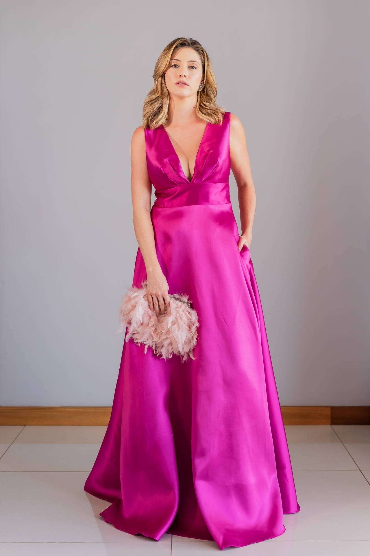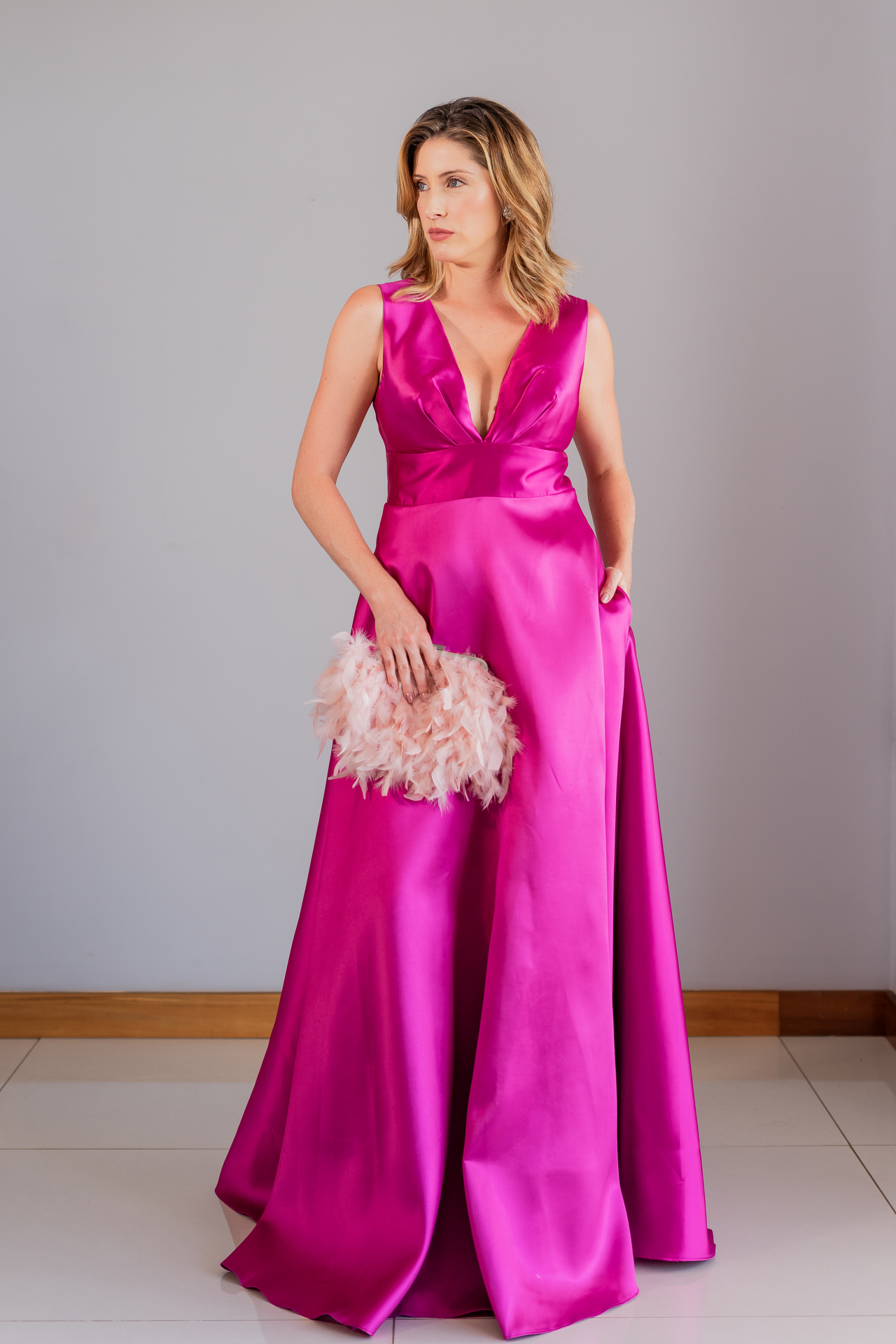 O vestido conta com bolsos laterais embutidos e forro interno.