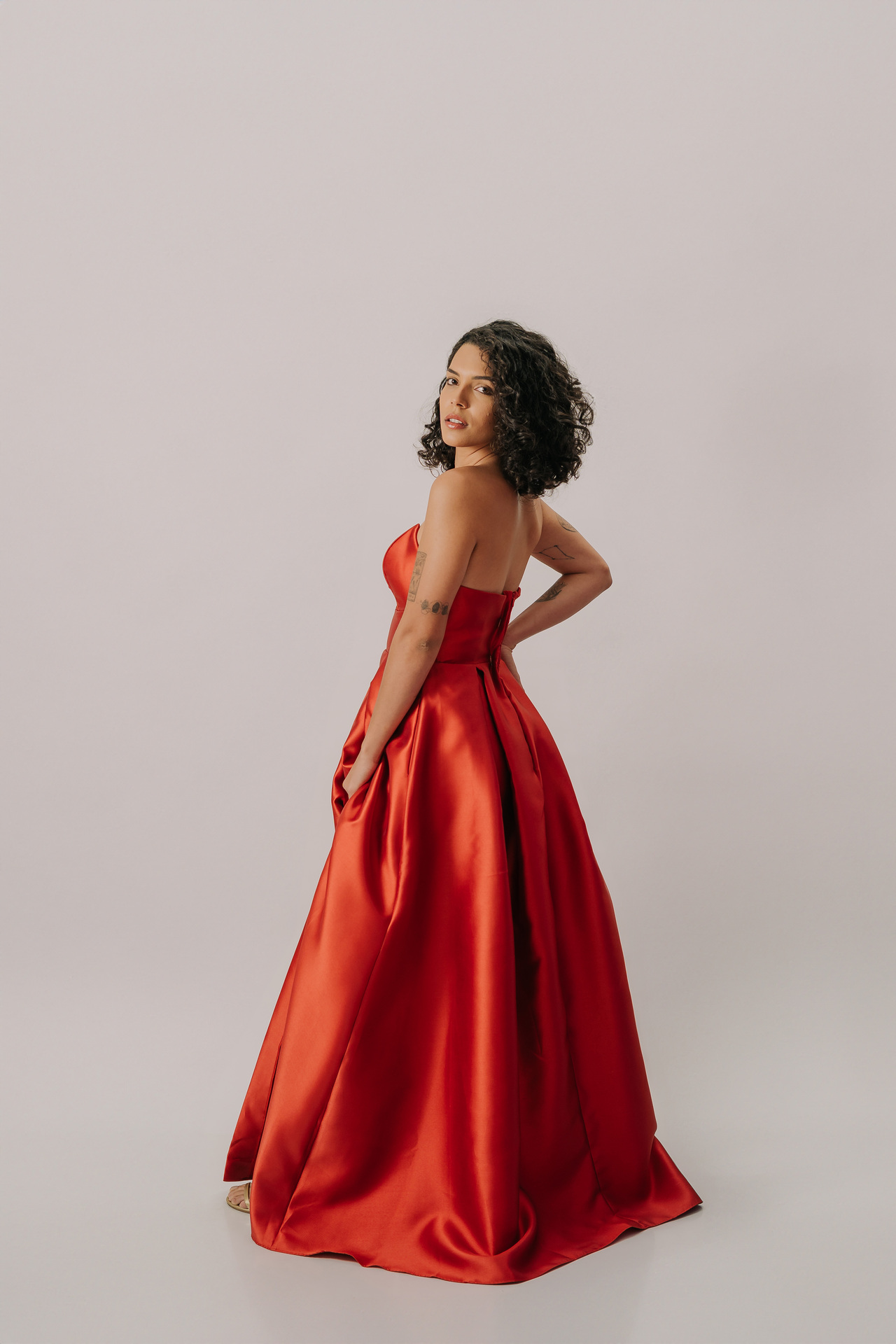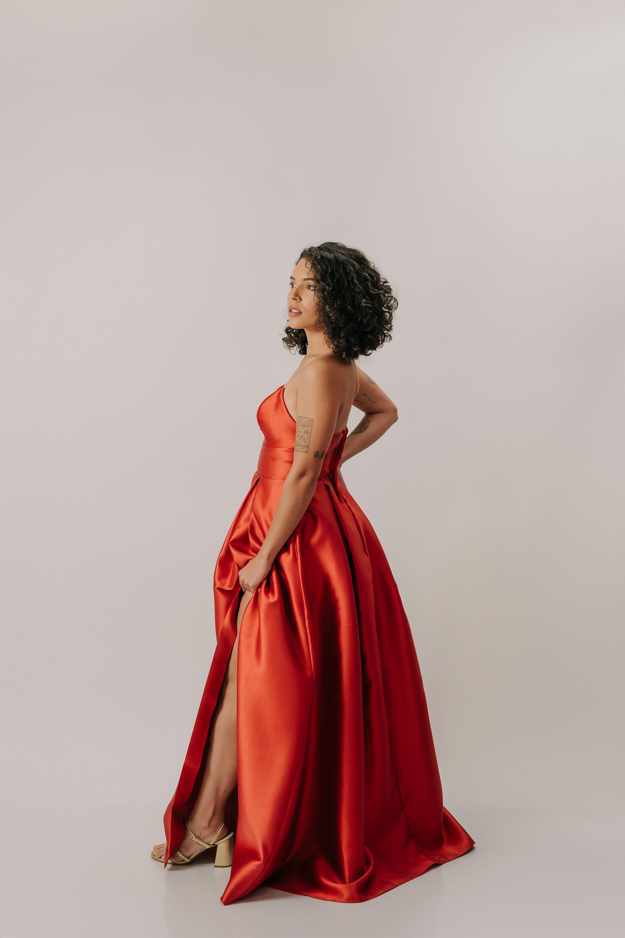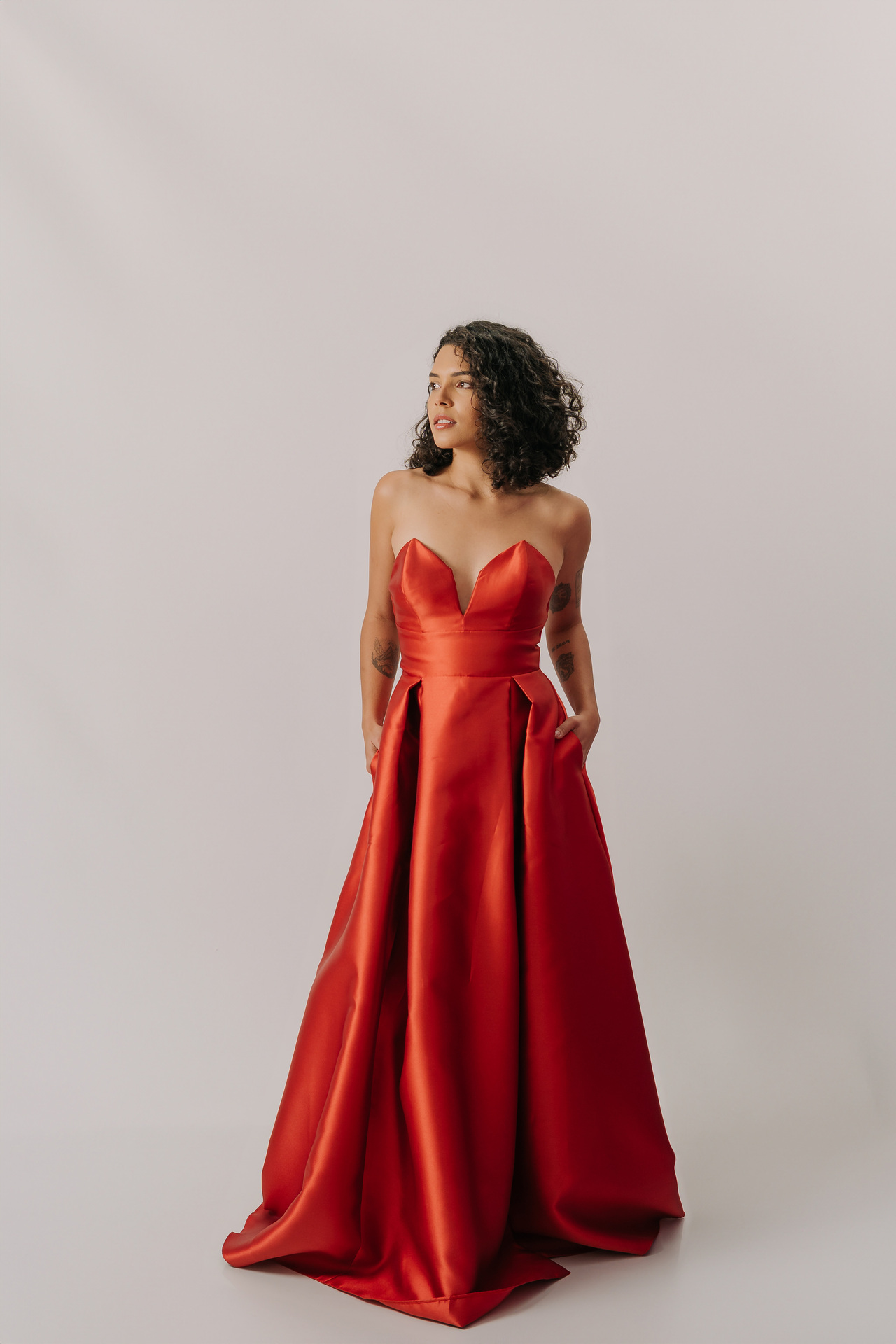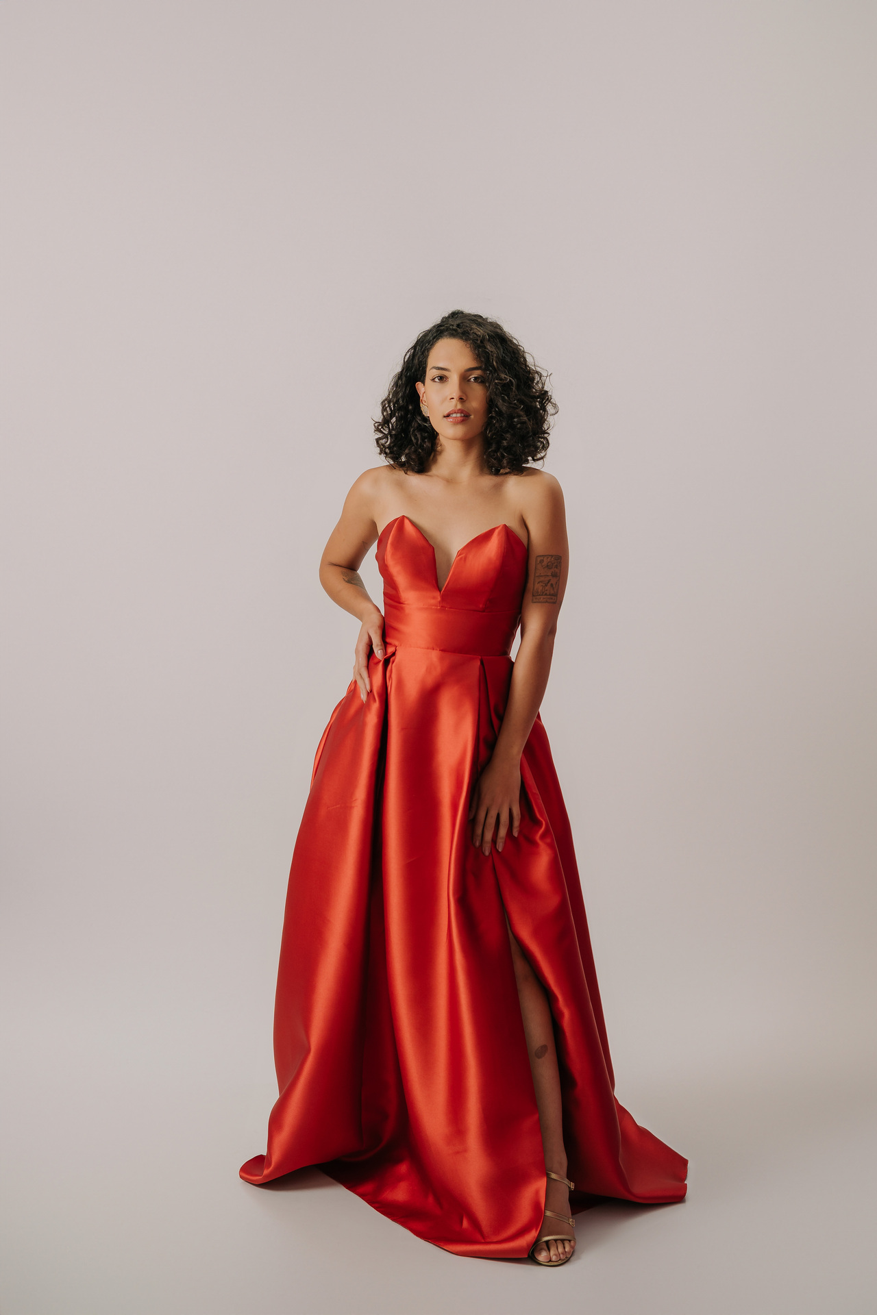 Perfeito para eventos black-tie, sua modelagem valoriza a silhueta, sendo ideal para biotipos Ampulheta, Retângulo e Triângulo/Pêra, combinando paixão, elegância clássica e um toque moderno.