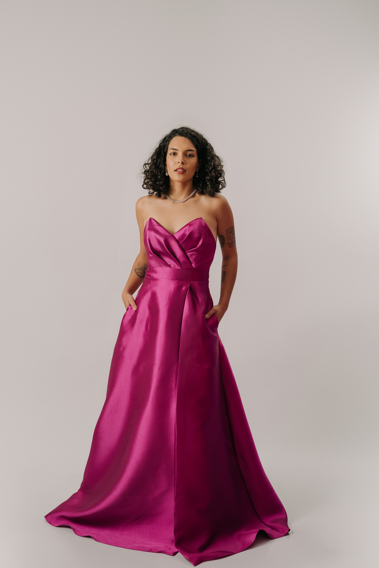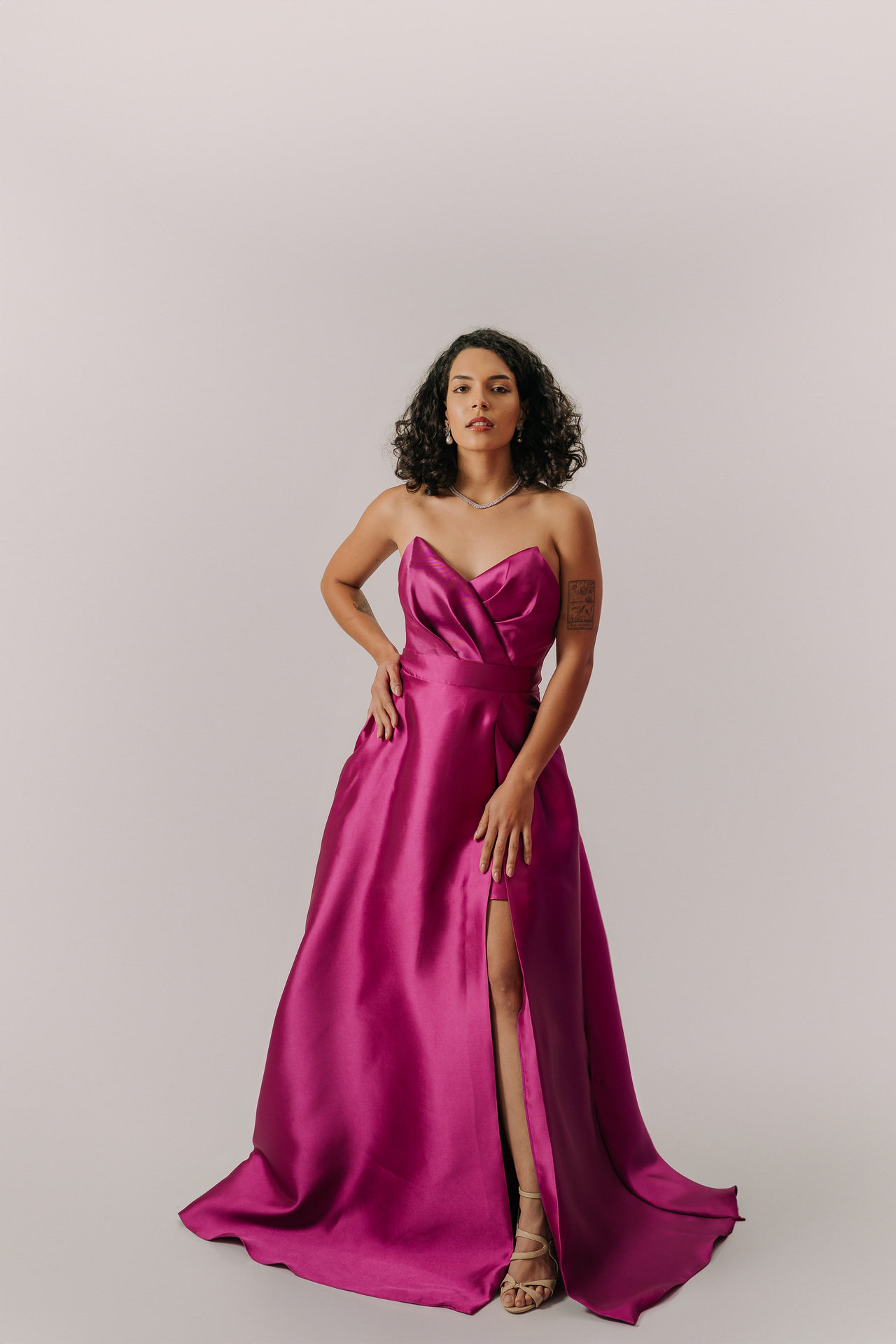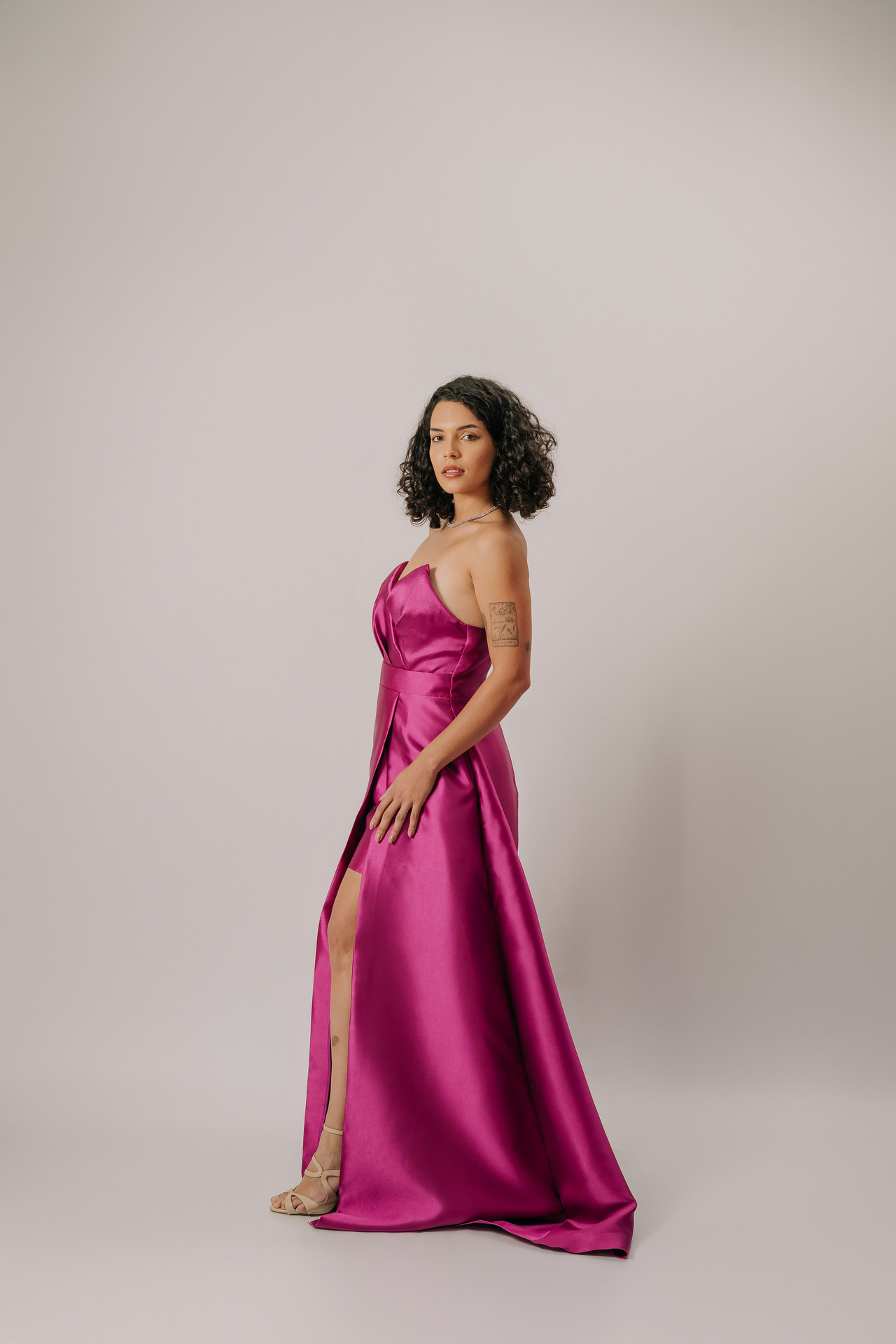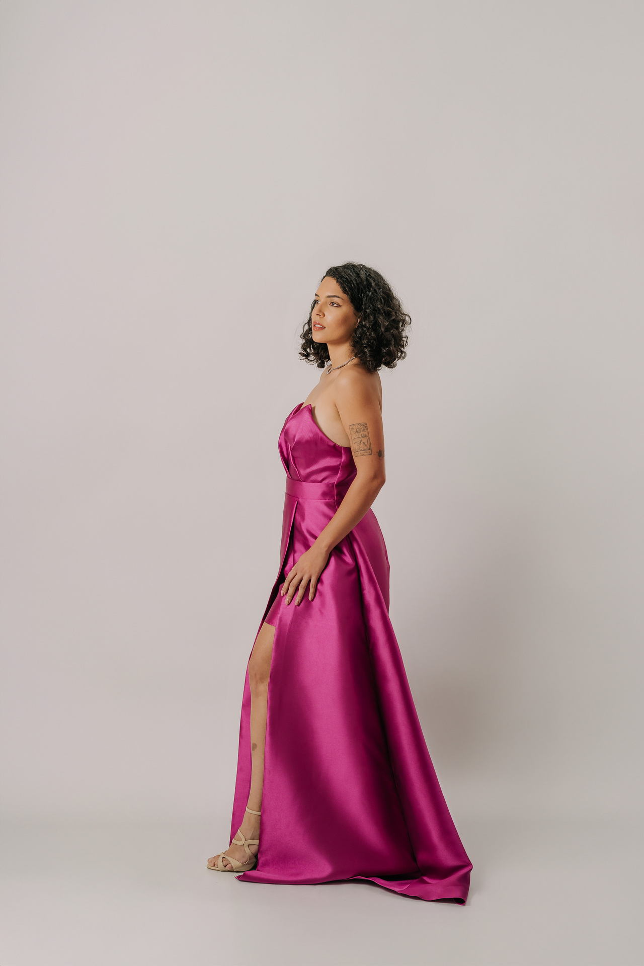 Ideal para eventos black-tie, sua modelagem valoriza a silhueta, sendo perfeito para biotipos Ampulheta, Retângulo e Triângulo/Pêra, combinando glamour, sensualidade e funcionalidade.