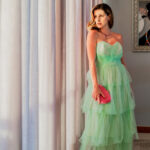 A modelagem é marcada na cintura, criando uma silhueta alongada e valorizando a forma feminina, enquanto a saia ampla e esvoaçante cai suavemente até o chão. Este vestido é ideal para diversas ocasiões especiais, desde casamentos e formaturas até eventos noturnos e coquetéis sofisticados. Combine-o com acessórios dourados ou prateados para realçar ainda mais seu brilho.